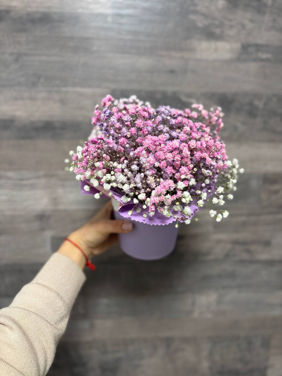Главная страница » Каталог » Композиции в флористической губке » 22. Мини композиция из гипсофилы