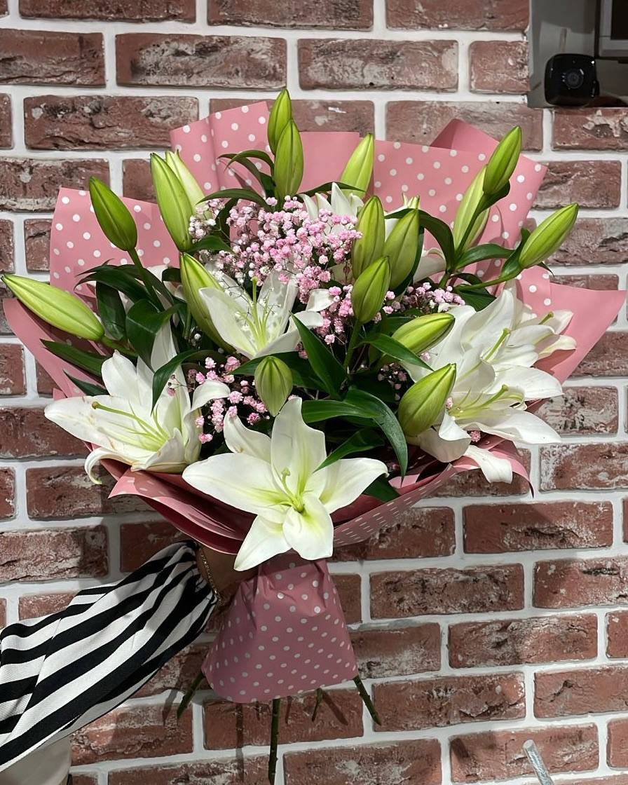 Лилия, гипсофила, дизайнерская упаковка