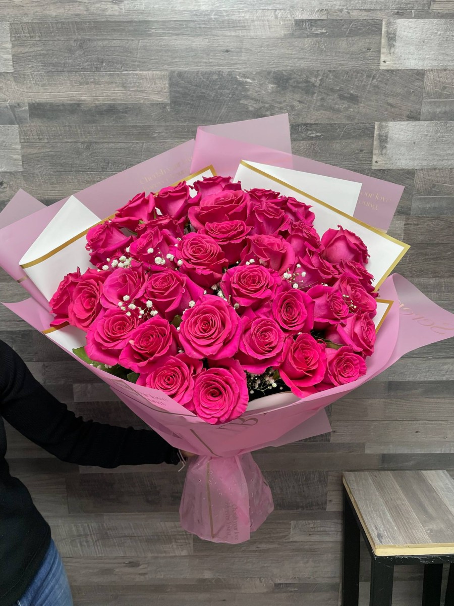 Состав: Одноголовая Роза, гипсофила, дизайнерская упаковка