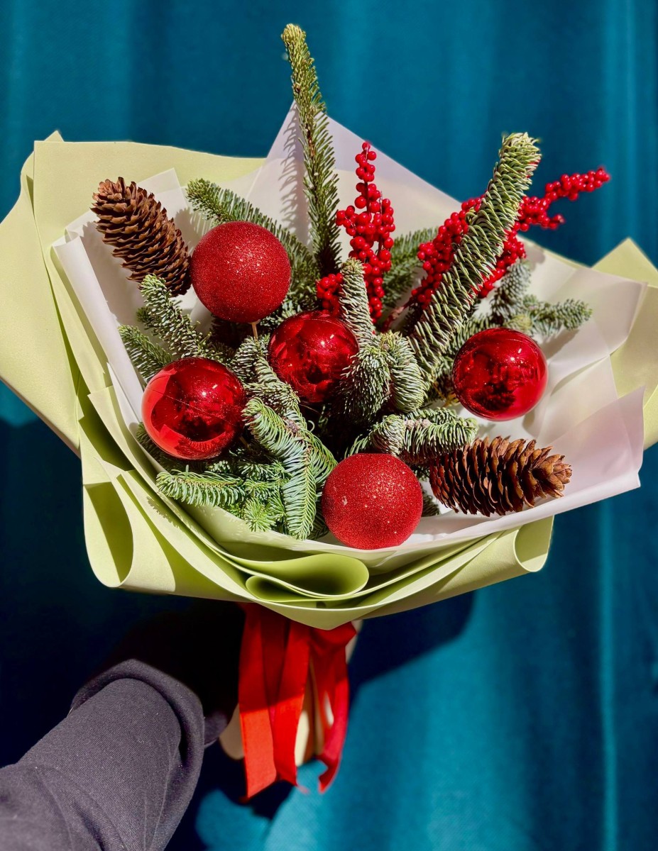 Состав: Нобилис, шишки, декор, дизайнерская упаковка